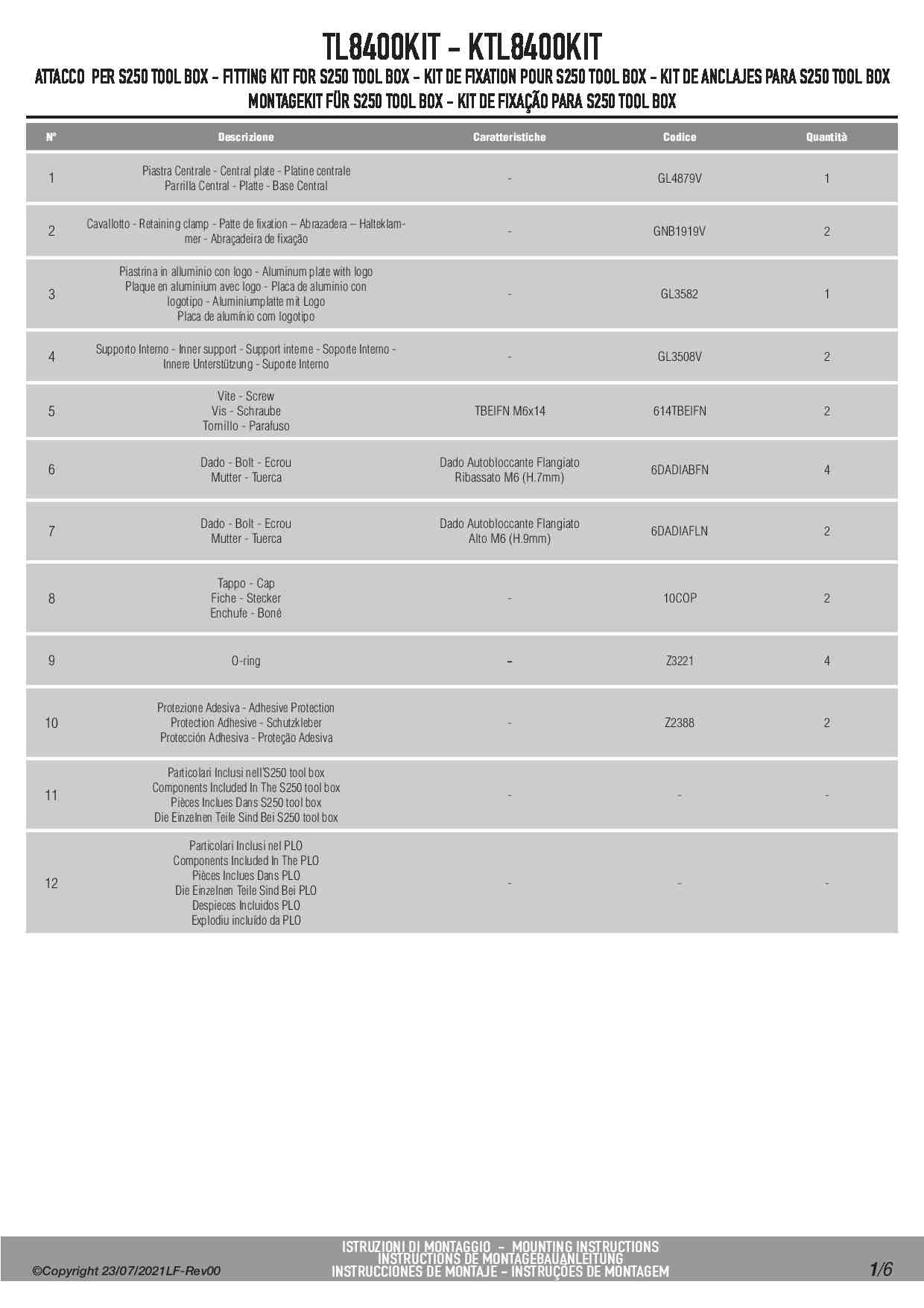 Specjalny zestaw KTL8400KIT do montażu skrzynki narzędziowej KS250 Tool Box na stelażu bocznym Kappa KLO8400MK, KLO8400CAM, KLO2159MK oraz KLO2159CAM.