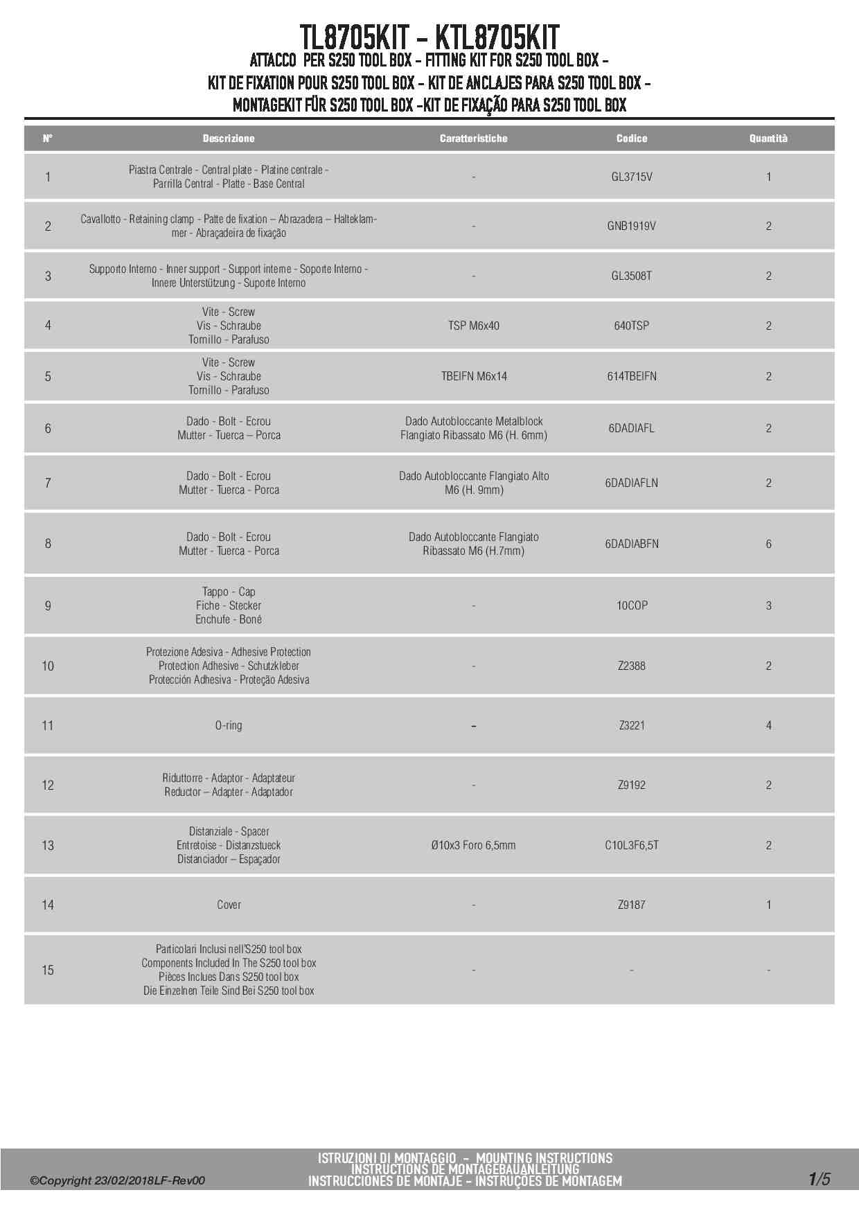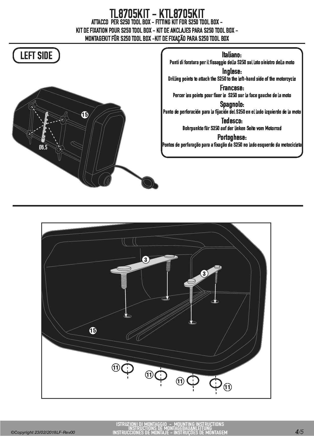 Specjalny zestaw KTL8705KIT do montażu skrzynki narzędziowej KS250 Tool Box na stelażu bocznym Kappa KL8711, KL8712, KLR4126, KLR6413.