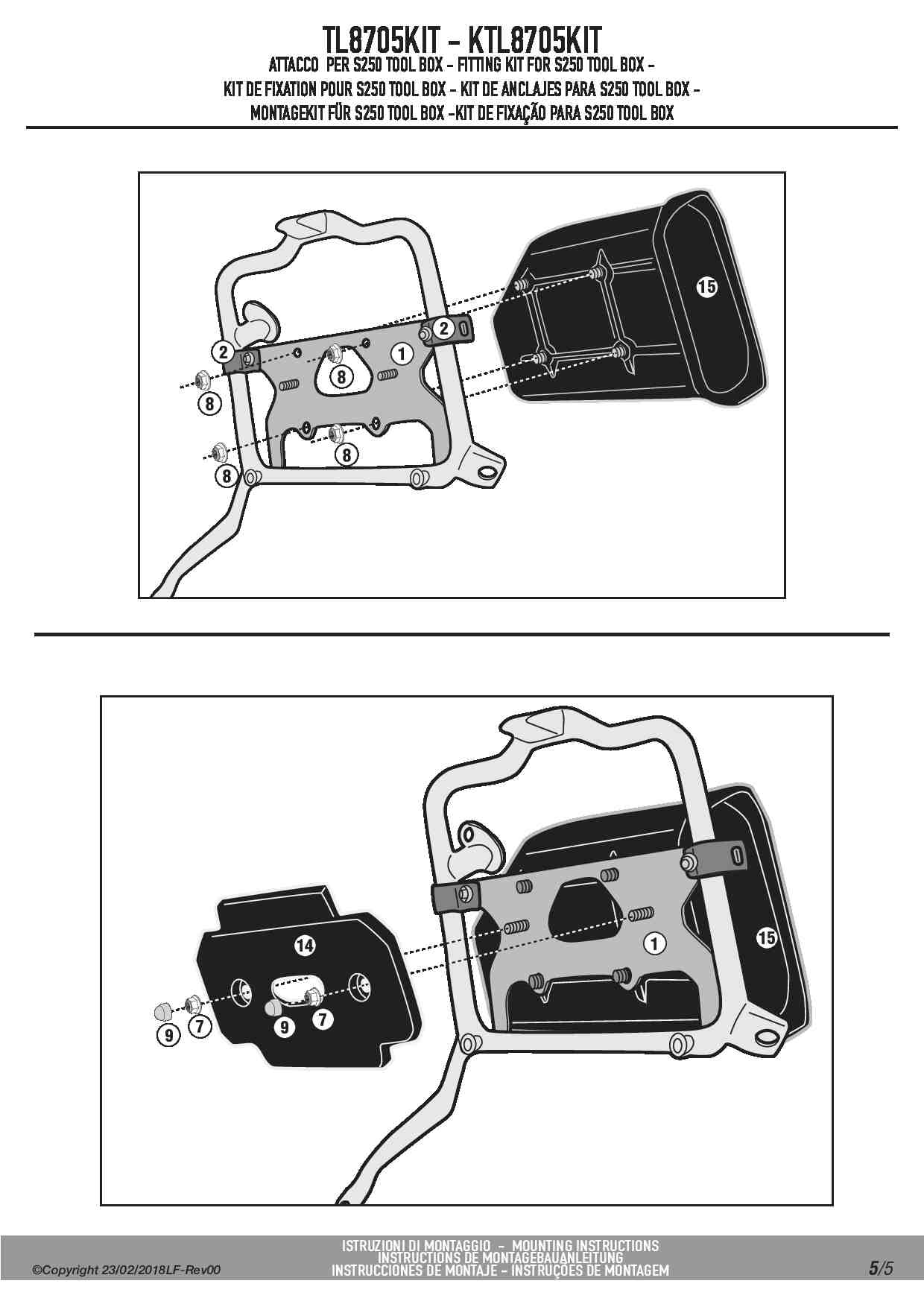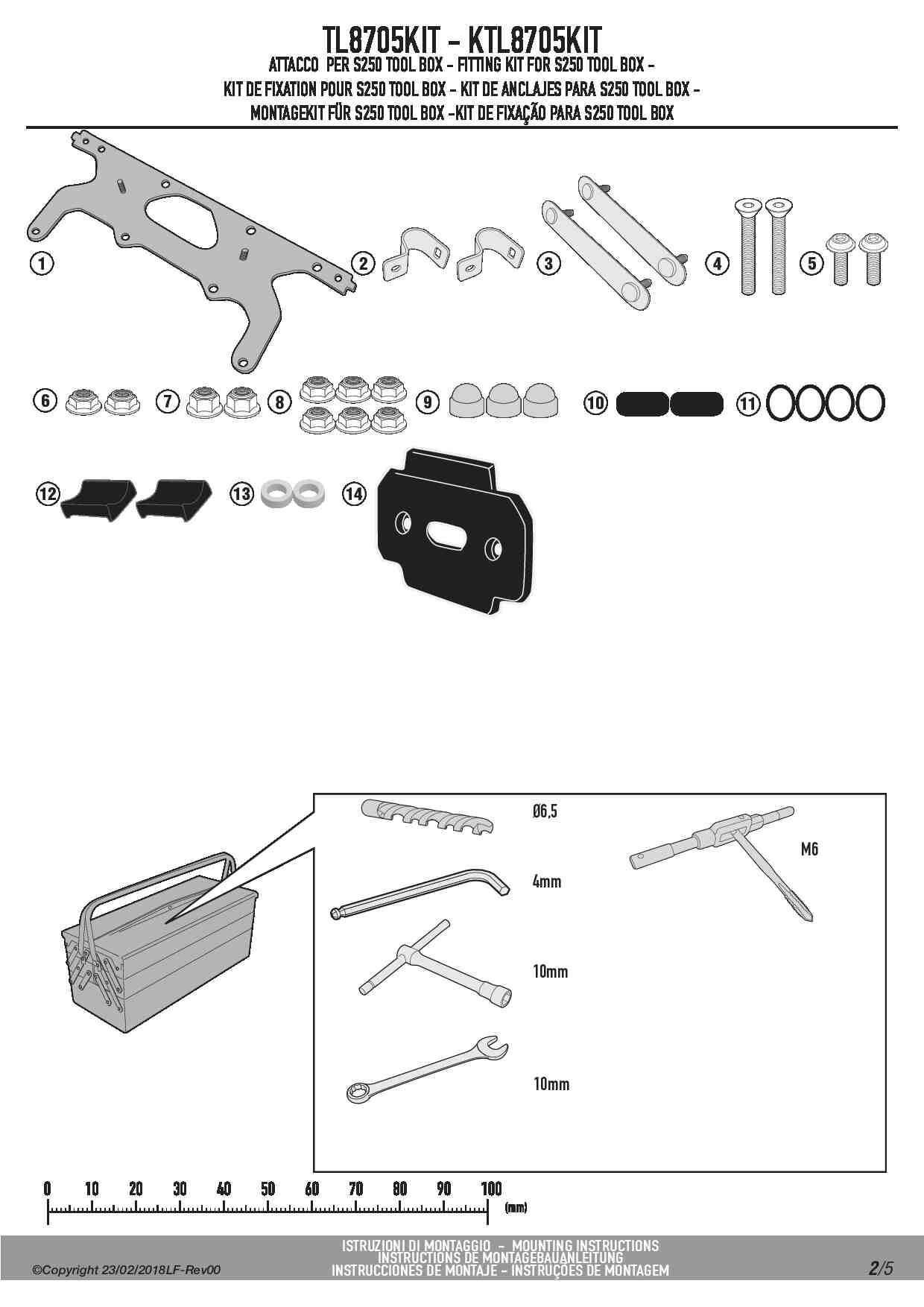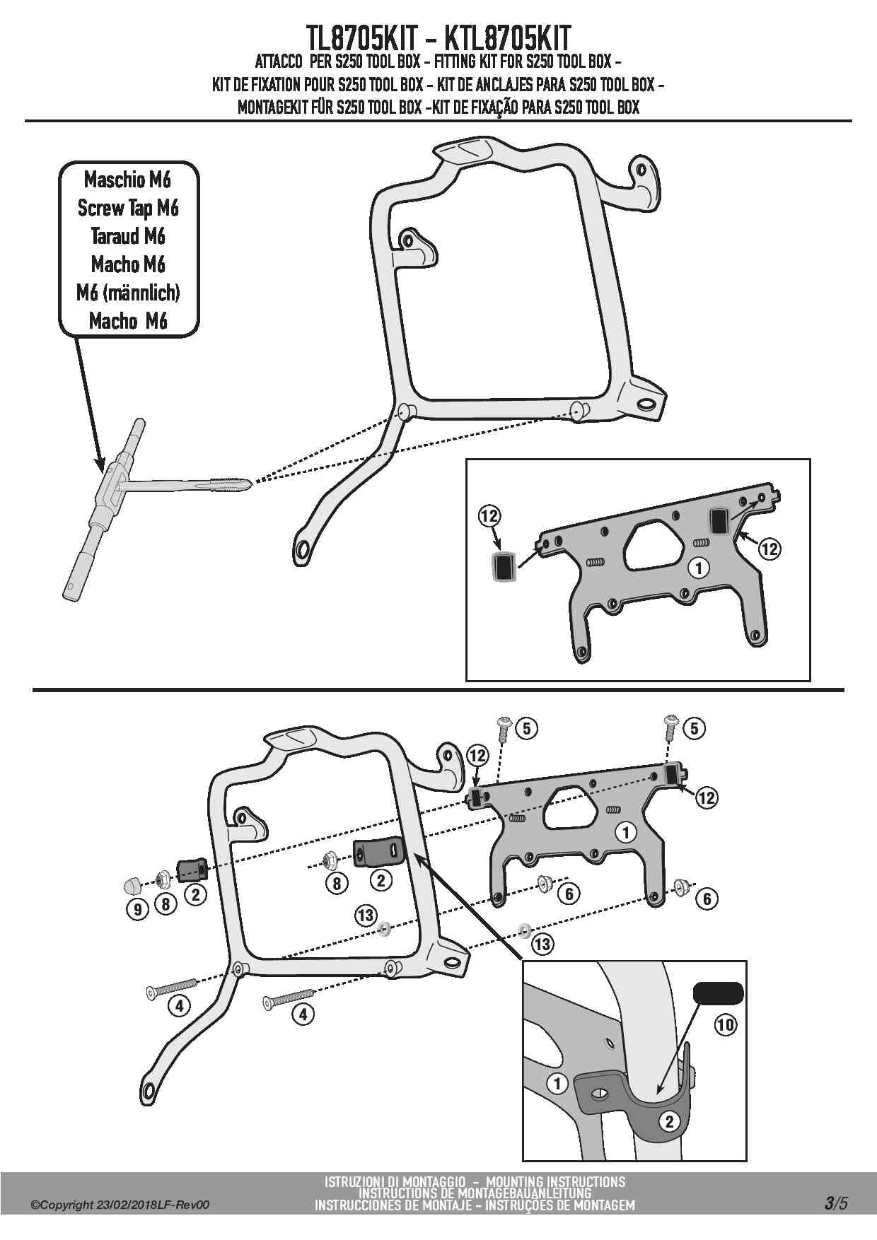 Zestaw montażowy Kappa KTL8705KIT narzędziówki KS250 - Benelli TRK502 (17-24) / TRK502 X (18-24) / Kawasaki Versys 1000 / SE (19-24) / Triumph Tiger 800 XC / XR (18-19)