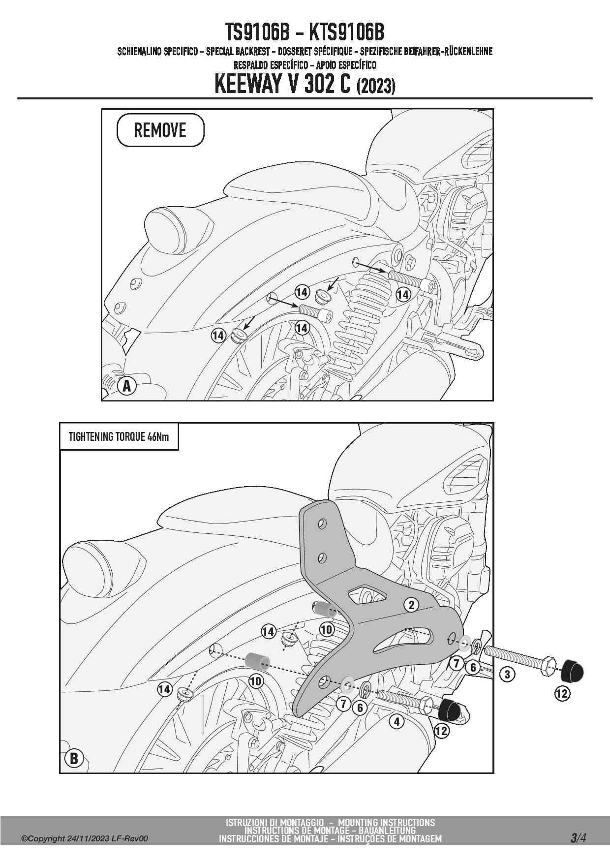 Oparcie dla pasażera Kappa KTS9106B do motocykla Keeway V 302 C (23-25)
