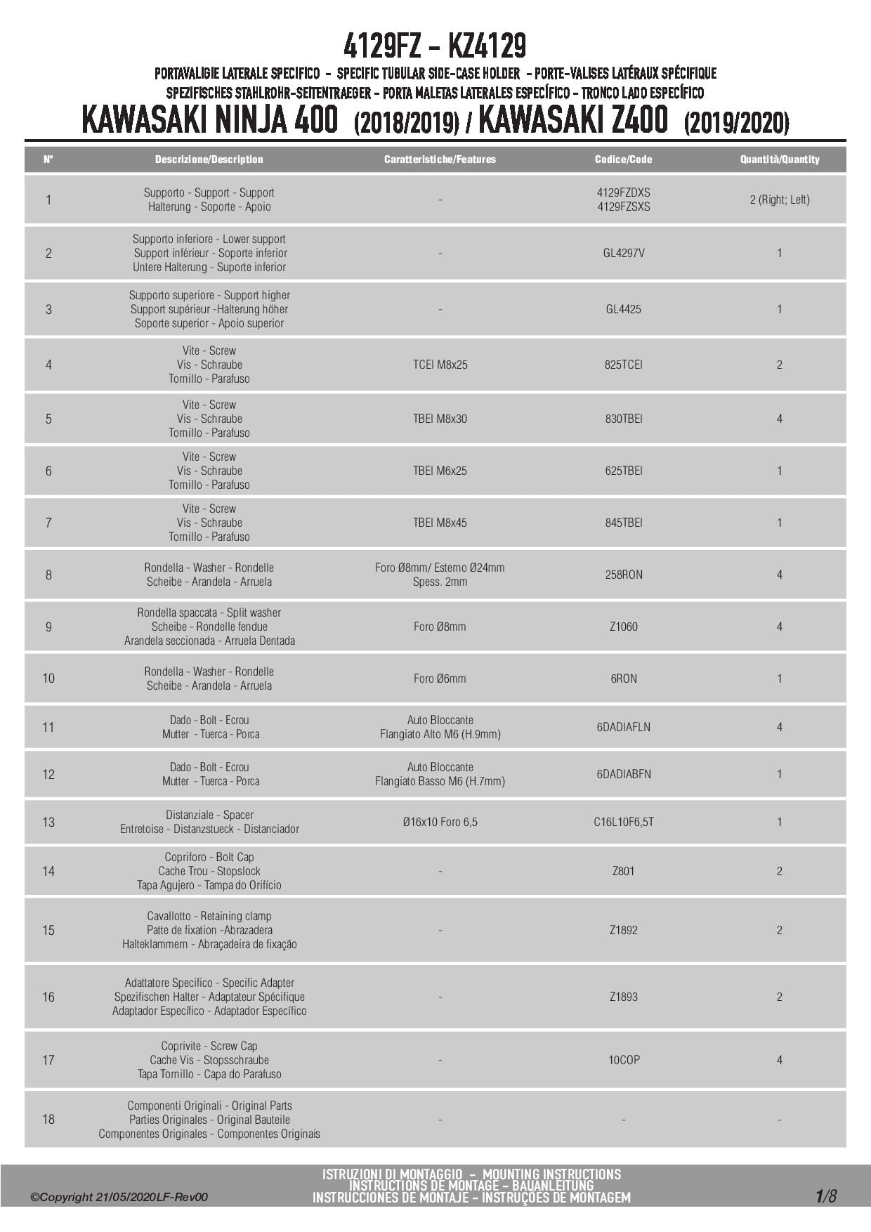 Stelaż kufra centralnego Kappa KZ4129 Kawasaki Ninja 400 (18-22) / Z 400 (19-22)