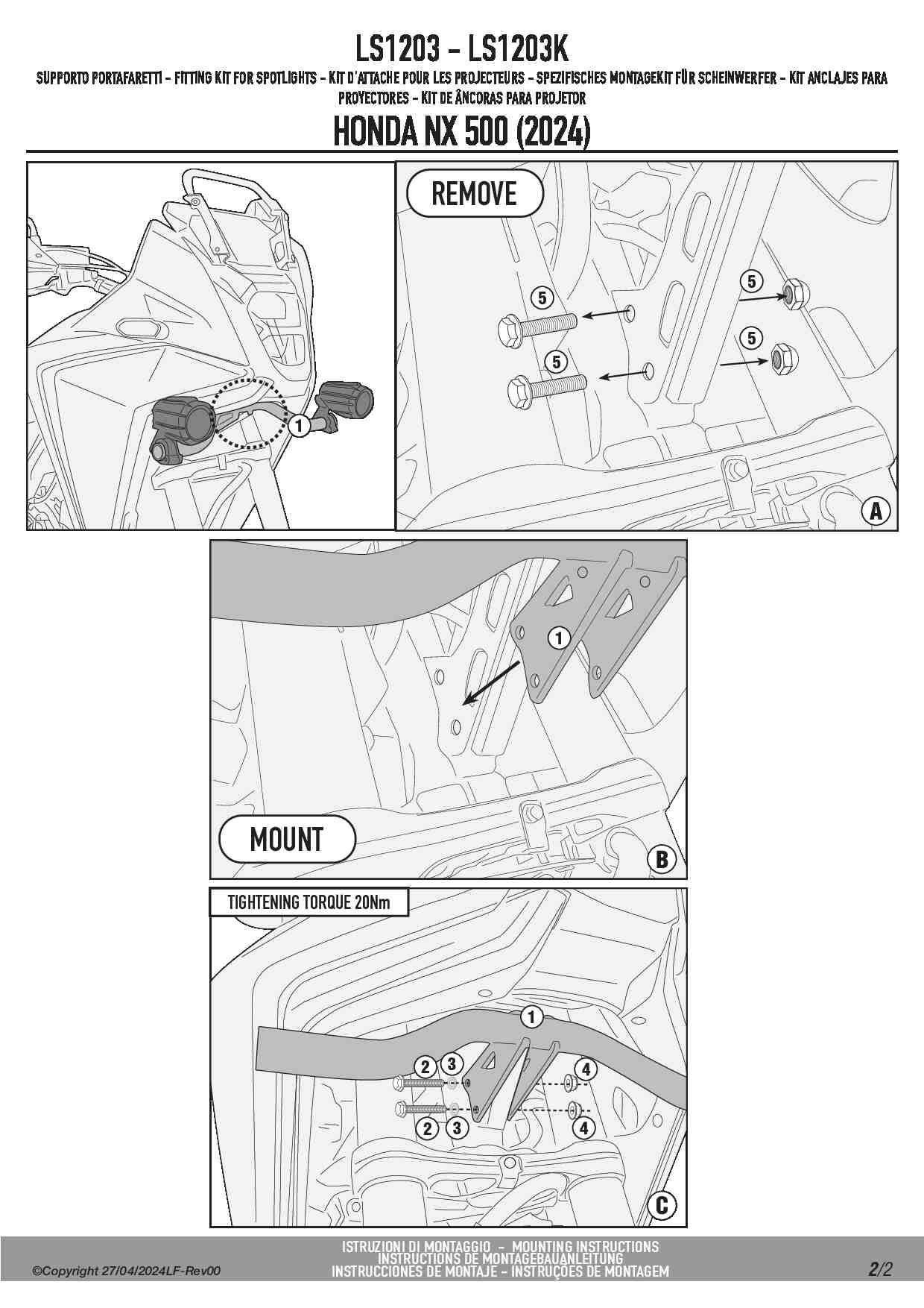 Mocowanie halogenów Kappa LS1203K do motocykla Honda NX 500 (24-25)