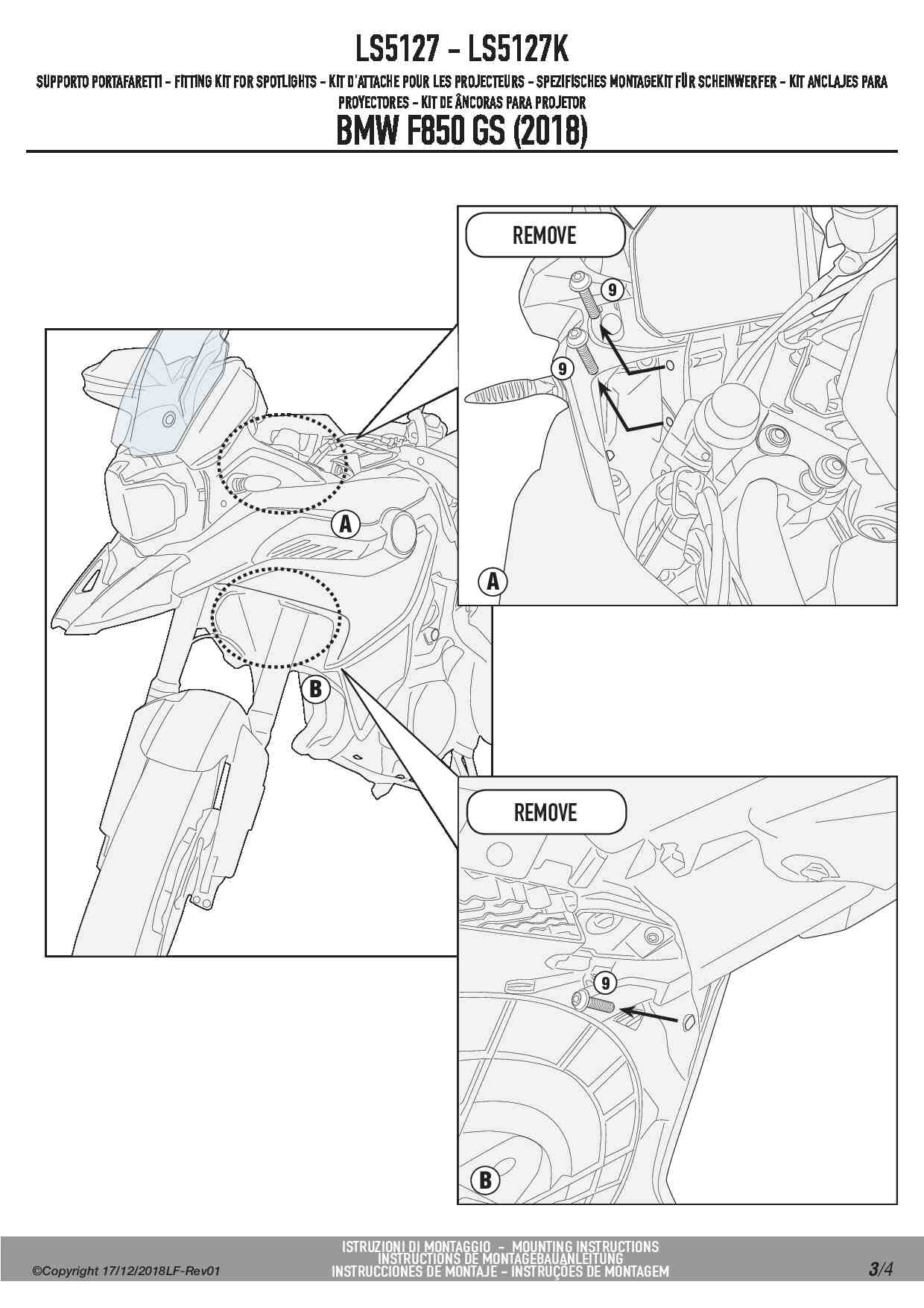 Kappa LS5127K Mocowanie halogenów BMW F 750 GS / F 850 GS (18-23) / F 800 GS (24-25)