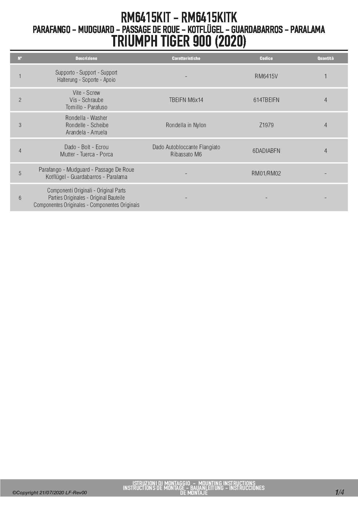 Mocowanie błotnika Kappa RM6415KITK do motocykla Triumph Tiger 900 (20-25)