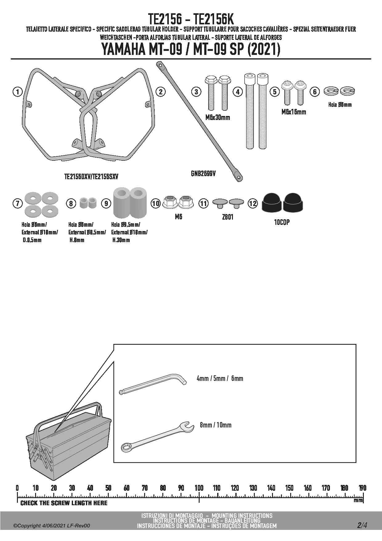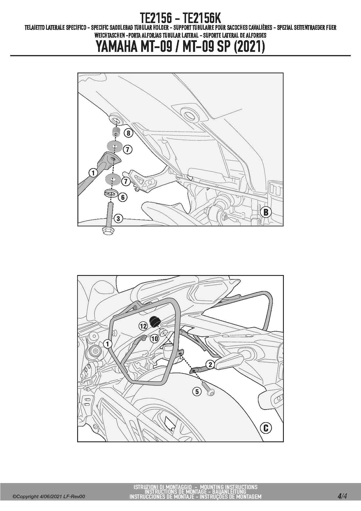 Stelaż pod sakwy boczne Kappa TE2156K umożliwia montaż sakw bocznych w systemie Easylock Kappa RA314, a także Givi ST609. Ponadto istnieje możliwość zamontowania wszystkich miękkich toreb bocznych z uniwersalnym mocowaniem (paski, rzepy, itp.).
