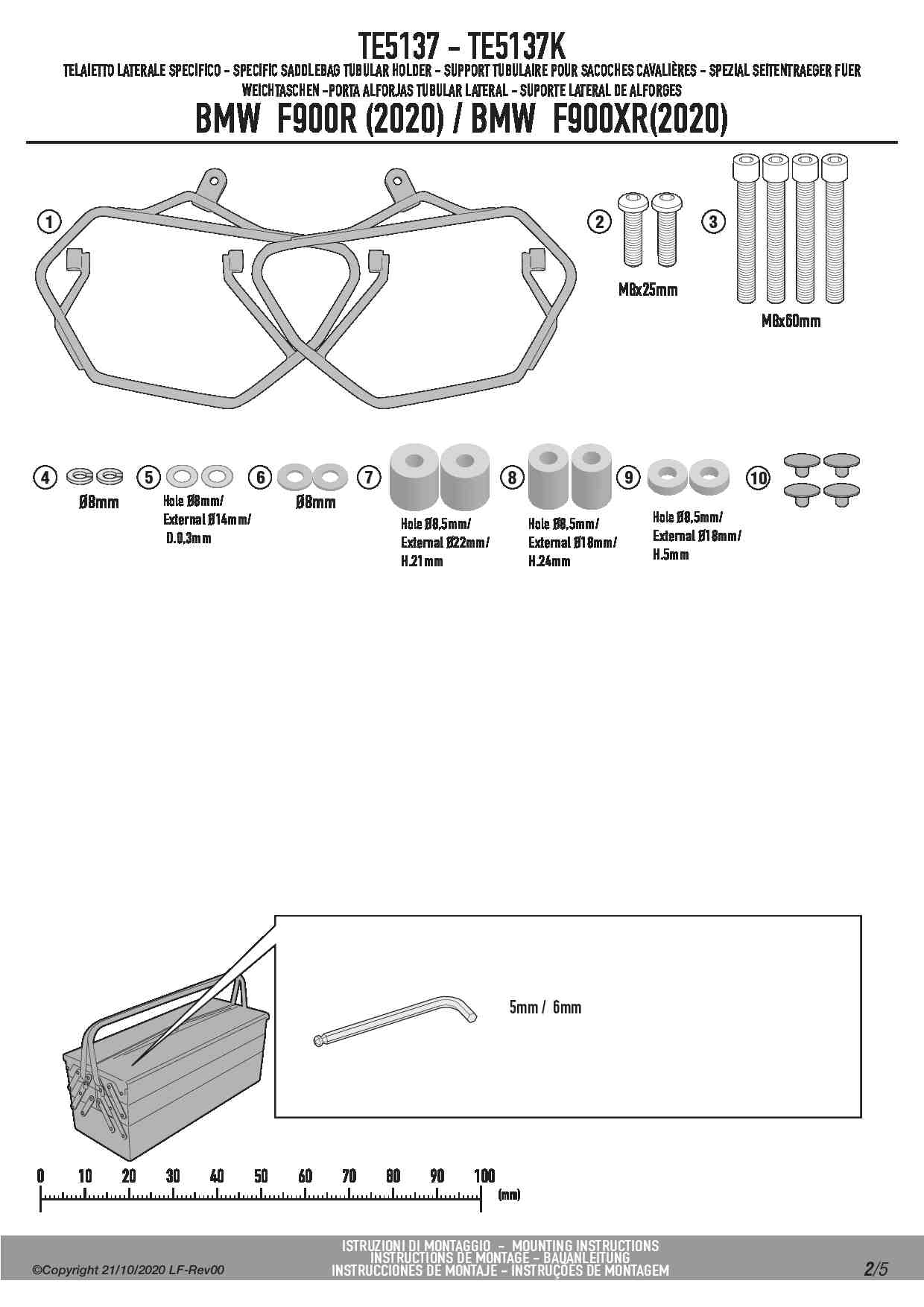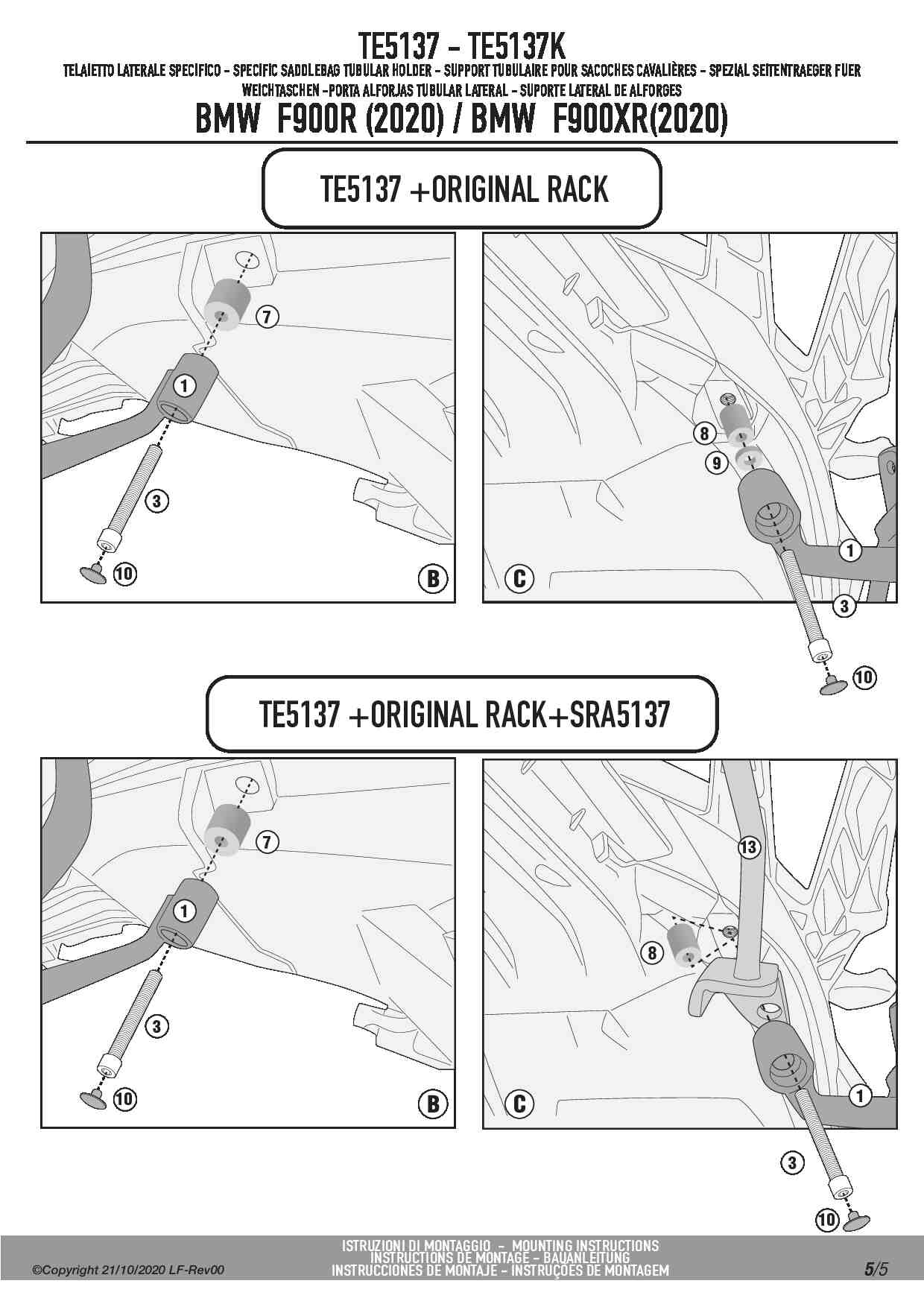 Stelaż pod sakwy boczne Kappa TE5137K umożliwia montaż sakw bocznych w systemie Easylock Kappa RA314, a także Givi ST609. Ponadto istnieje możliwość zamontowania wszystkich miękkich toreb bocznych z uniwersalnym mocowaniem (paski, rzepy, itp.).