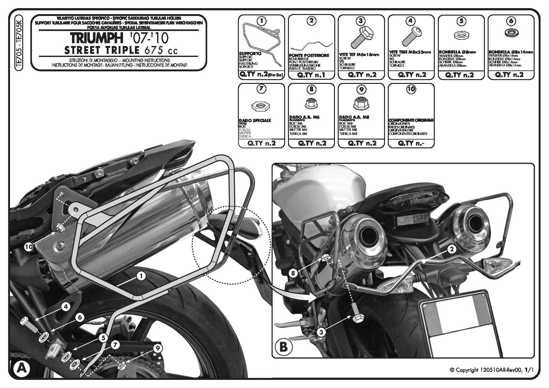 Kappa TE705K Stelaż sakw bocznych Triumph Street Triple 675 (07-12) Easylock