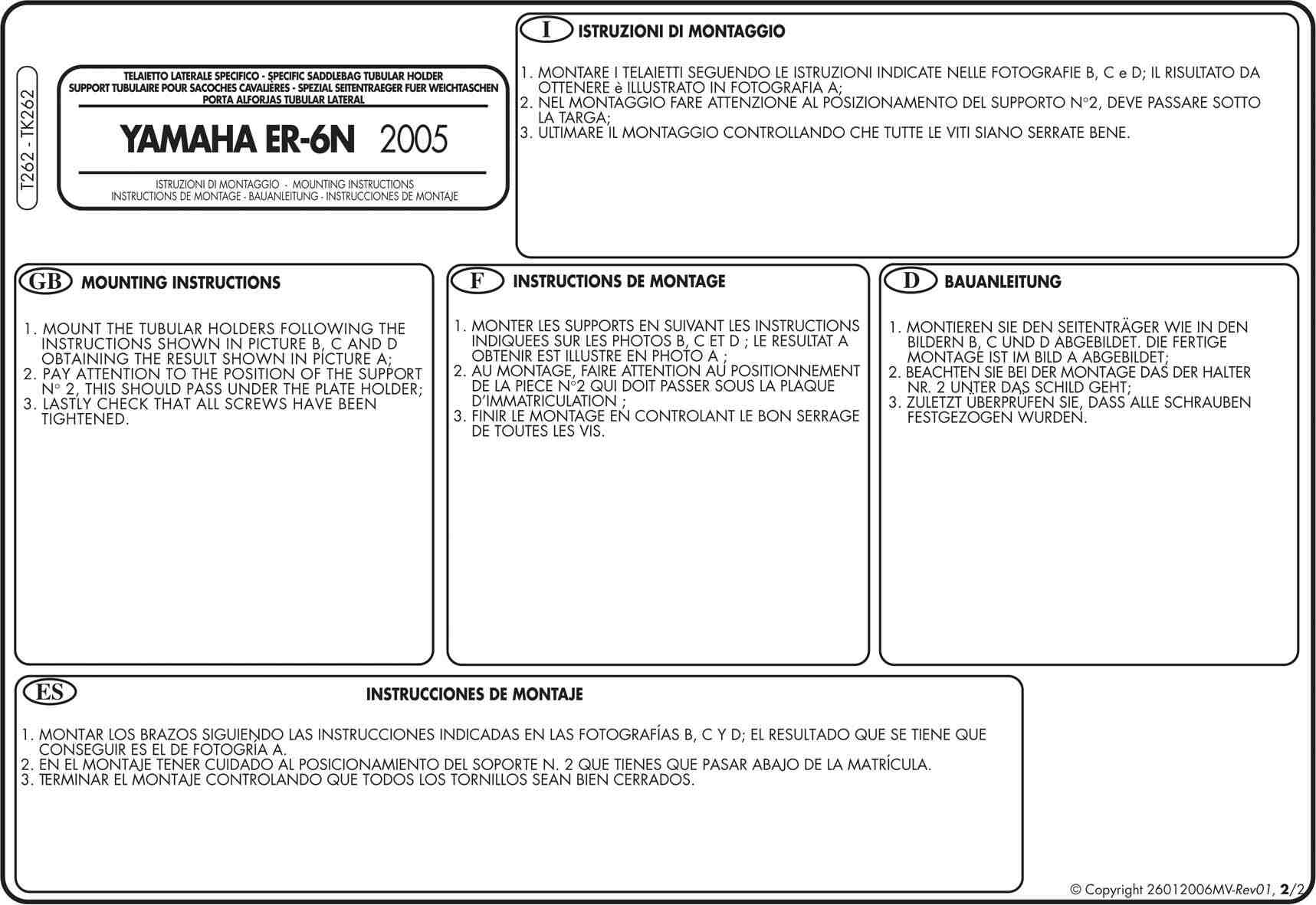 Stelaż sakw bocznych Kappa TK262 do motocykla Kawasaki ER 6N / ER6F 650 (05-08)