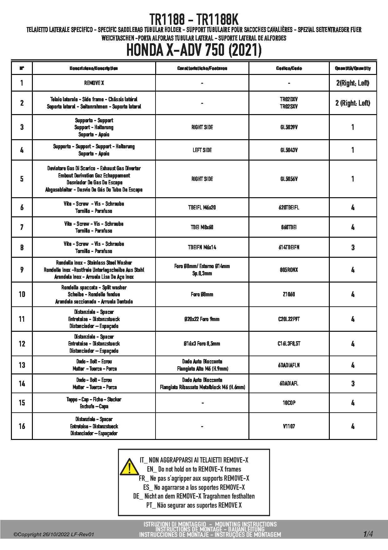 Kappa TR1188K Stelaż pod sakwy boczne Honda X-Adv 750 (21-25) REMOVE-X