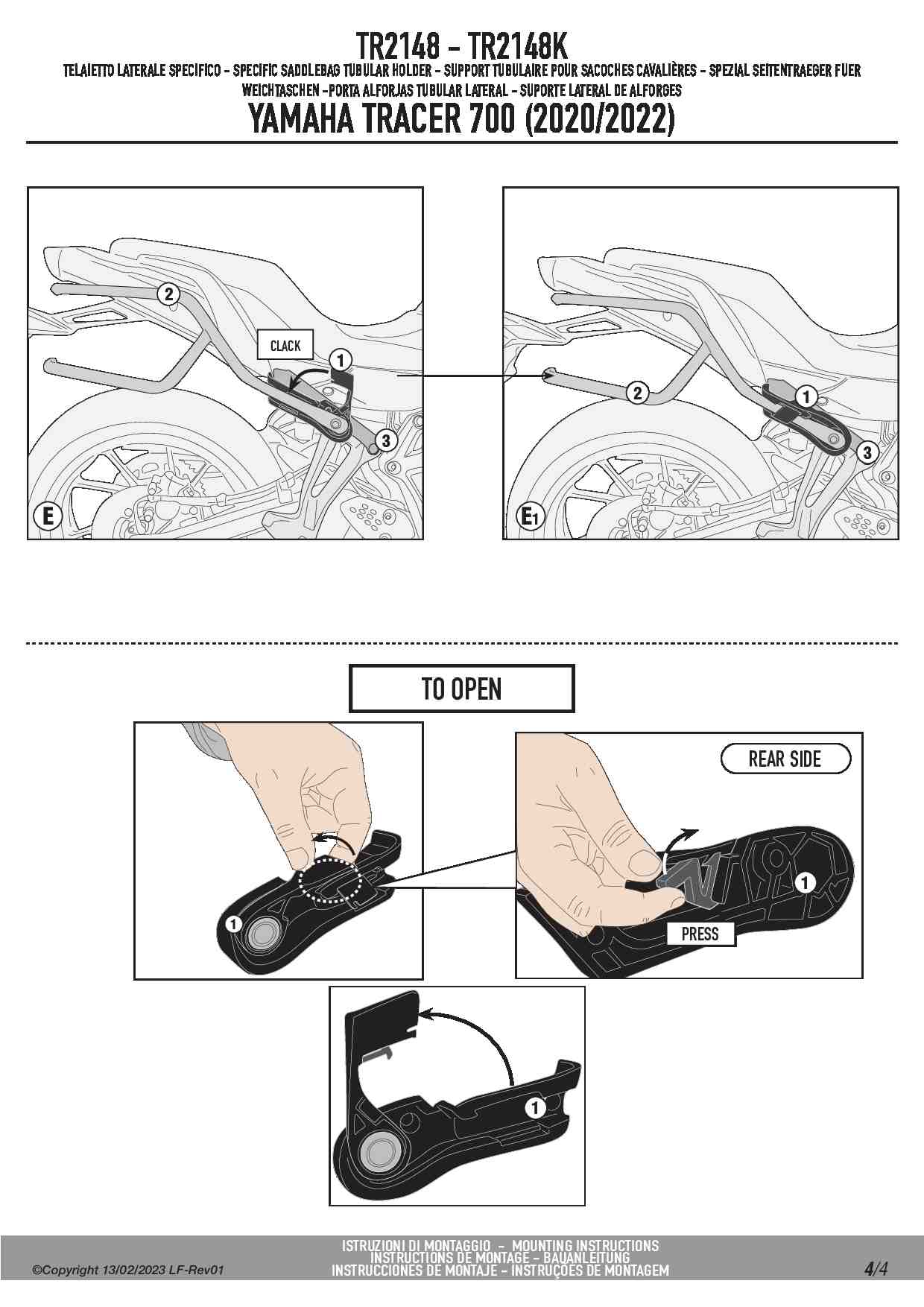Kappa TR2148K Stelaż pod sakwy Yamaha Tracer 700 / GT (20-24) / 7 (25) Remove-X