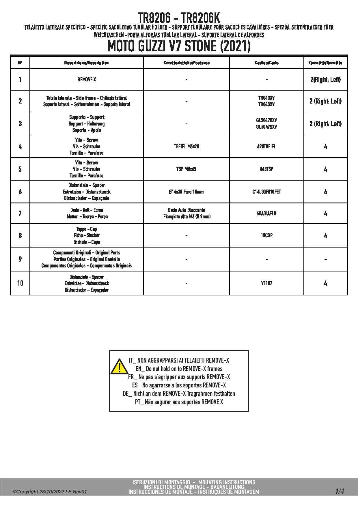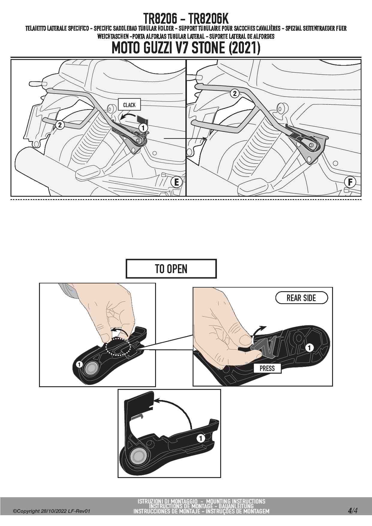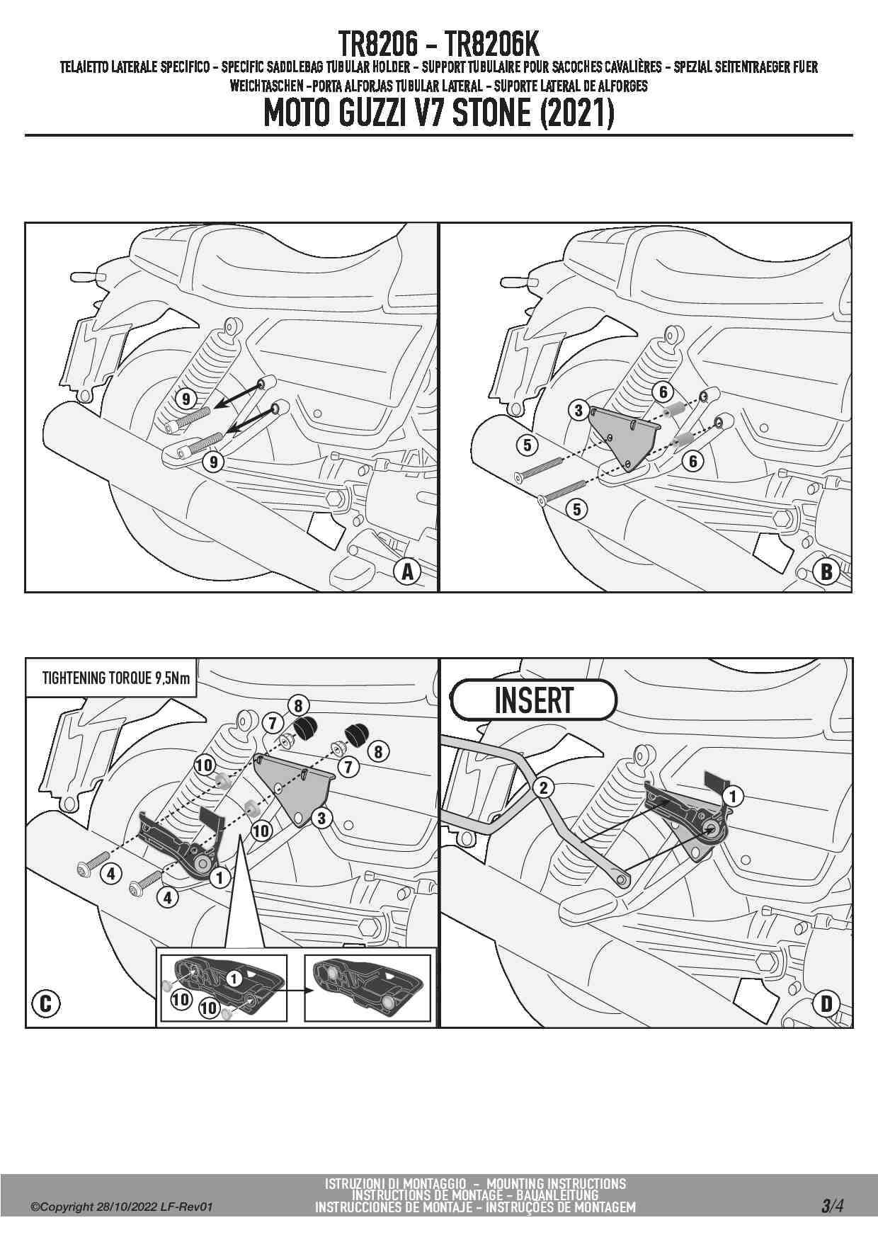 Stelaż nie jest kompatybilny z wersjami V7 Special Edition i V7 Stone Ten wyposażonymi w wydech Moto Guzzi by Arrow.