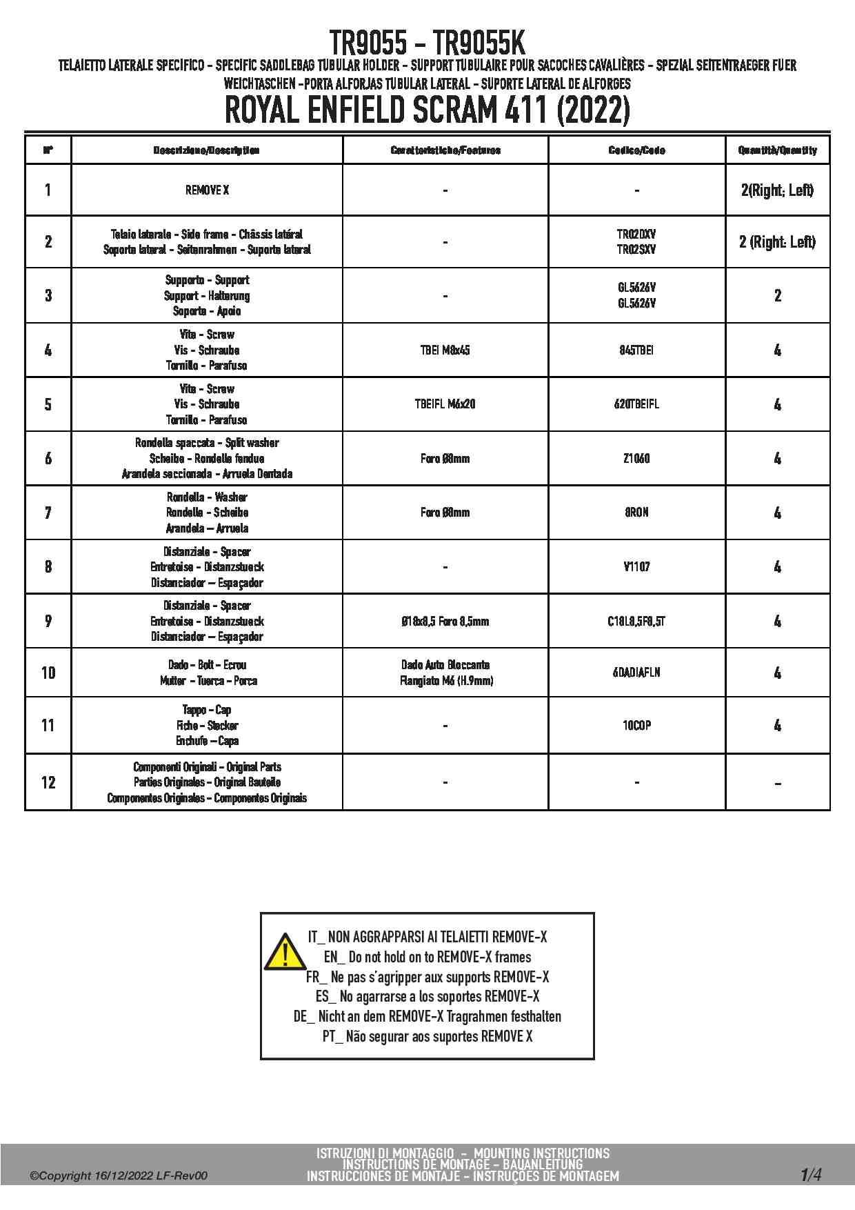 Kappa TR9055K Stelaż pod sakwy boczne Royal Enfield Scram 411 (22-24) REMOVE-X