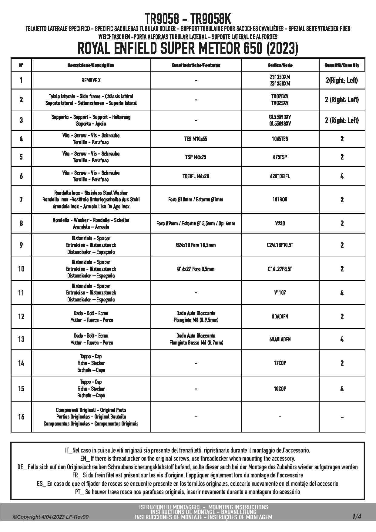 Kappa TR9058K Stelaż pod sakwy boczne Royal Enfield Super Meteor 650 (23-25) Remove-X