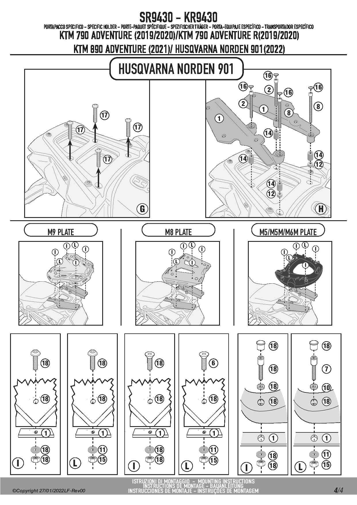 Stelaż kufra centralnego Kappa KR9430 do motocykla Husqvarna Norden 901 / KTM 790 Adventure/R / 890 Adventure / 890 SMT