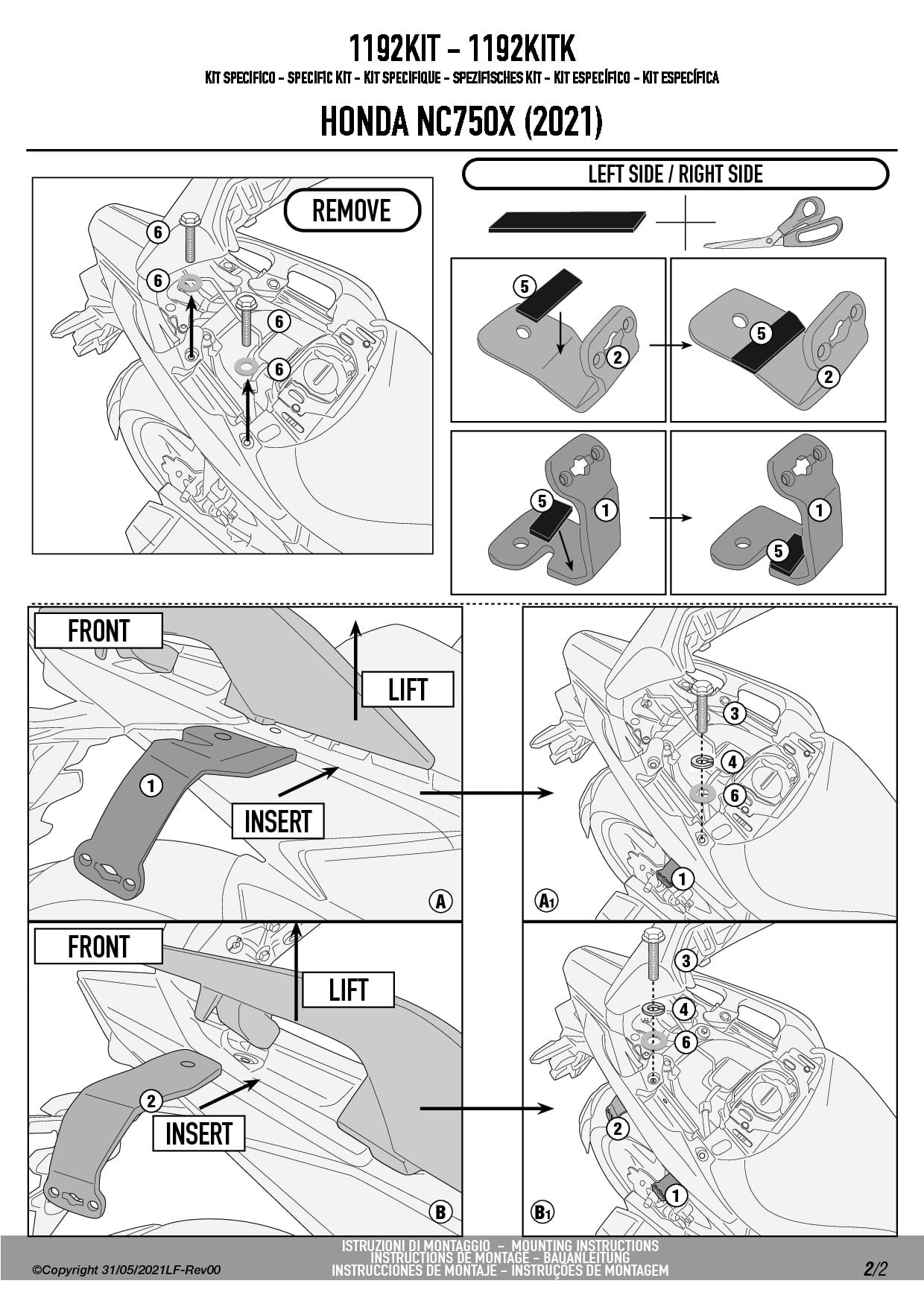 Kit montażowy stelaży bocznych 1192KIT Honda NC750X (21-25)
