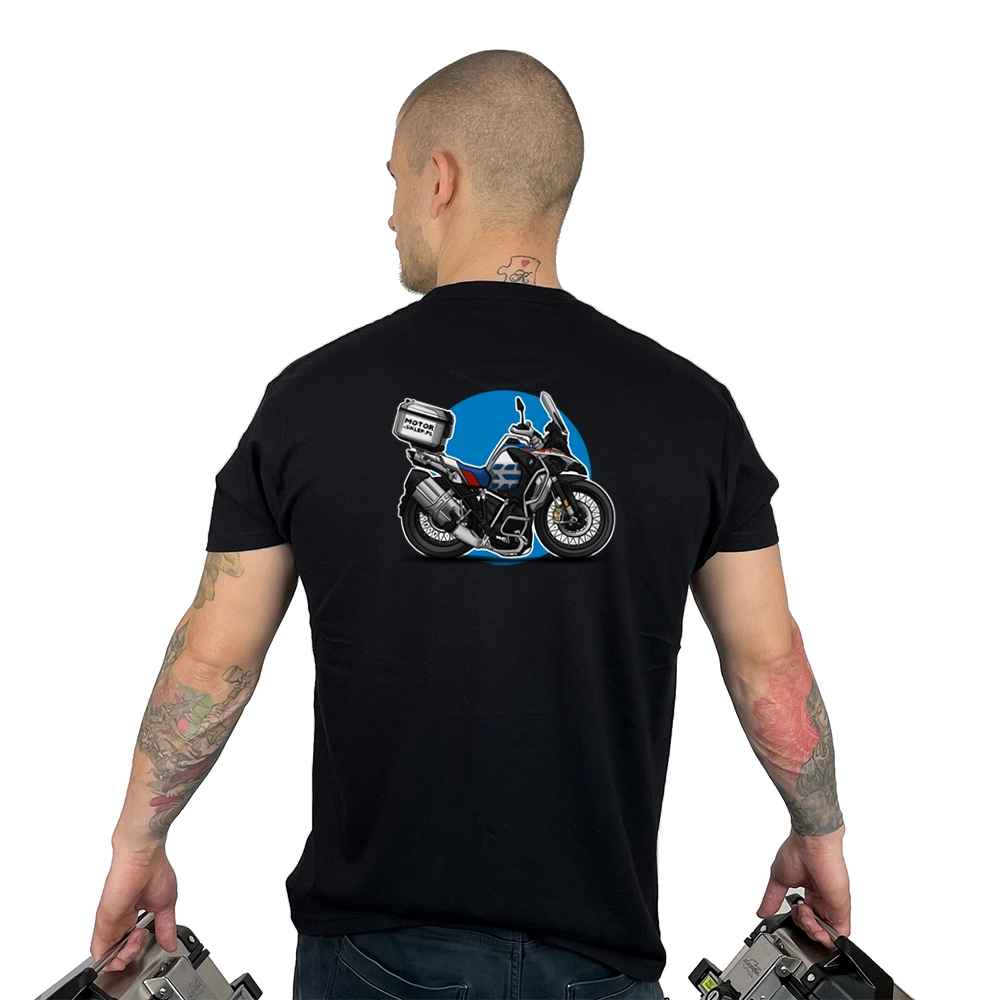 Czarna koszulka motocyklowa z nadrukiem BMW R 1250 GS