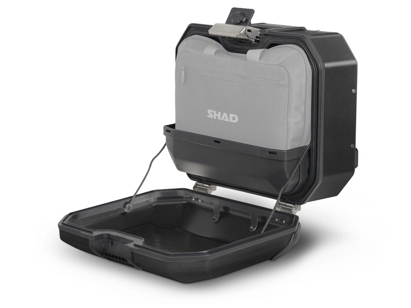 Przystosowany do montażu na stelażach bocznych SHAD 4P. Gumowa uszczelka kufra oraz obudowy zapewnia wodoszczelność, a zewnętrzna osłona w wytrzymałego tworzywa zabezpiecza kufer przed uszkodzeniami. Dzięki niej bez obaw kufer można stabilnie postawić na ziemi. Do kufra można dokupić torbę wewnętrzną, która ułatwia pakowanie i przenoszenie bagażu.