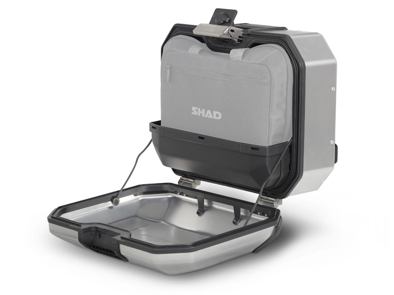 Przystosowany do montażu na stelażach bocznych SHAD 4P. Gumowa uszczelka kufra oraz obudowy zapewnia wodoszczelność, a zewnętrzna osłona w wytrzymałego tworzywa zabezpiecza kufer przed uszkodzeniami. Dzięki niej bez obaw kufer można stabilnie postawić na ziemi. Do kufra można dokupić torbę wewnętrzną, która ułatwia pakowanie i przenoszenie bagażu.