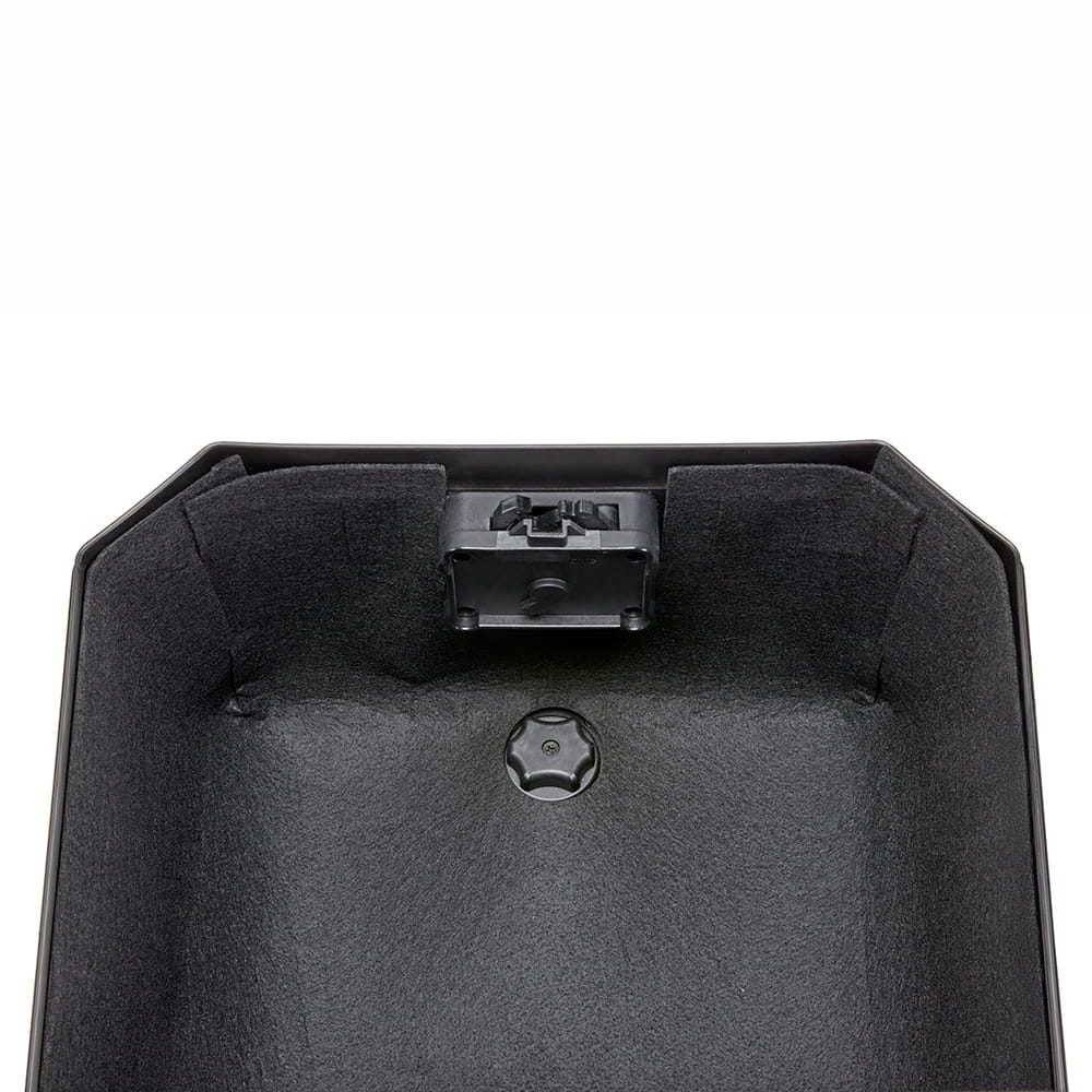 Kufer został zaprojektowany tak, aby zapewnić możliwie najwyższą wygodę i bezpieczeństwo. System Crablock umożliwia szybkie otwieranie pokrywy po przekręceniu kluczyka, a wewnętrzne pokrętło wypinające pozwala odłączyć kufer od płyty montażowej tylko przy otwartej pokrywie. Dzięki temu całkowicie eliminuje ryzyko przypadkowego odpięcia podczas jazdy.