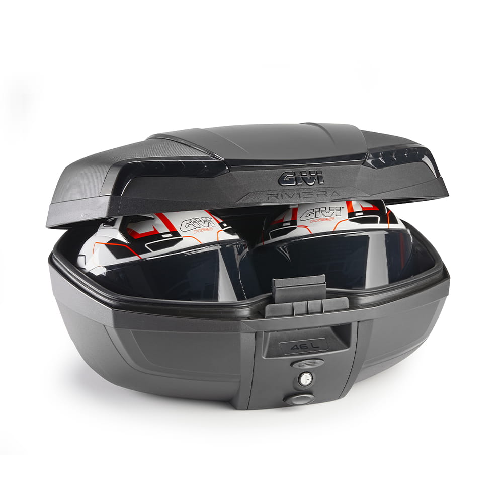 - Pojemność kufra: 46 litrów (zmieści dwa kaski integralne)