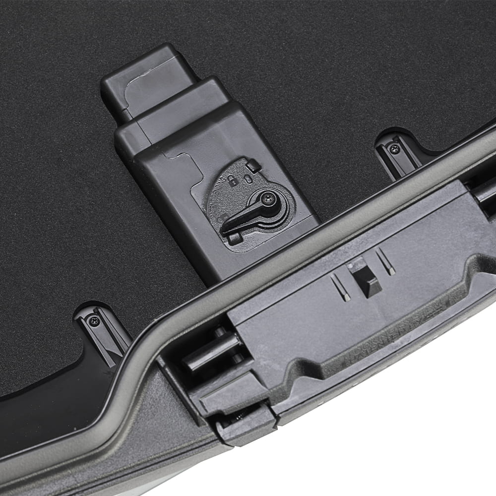 Kufer Maxia 5 to najwyższej jakości rozwiązanie do przechowywania bagażu dla miłośników turystyki motocyklowej. Model V58NNG wyróżnia się eleganckim designem, w którym zastosowano cztery grafitowe wstawki oraz czerwony odblask z przodu. Aerodynamiczny kształt kufra podkreślają zdobienia na pokrywie i detale na podstawie.