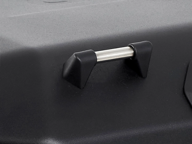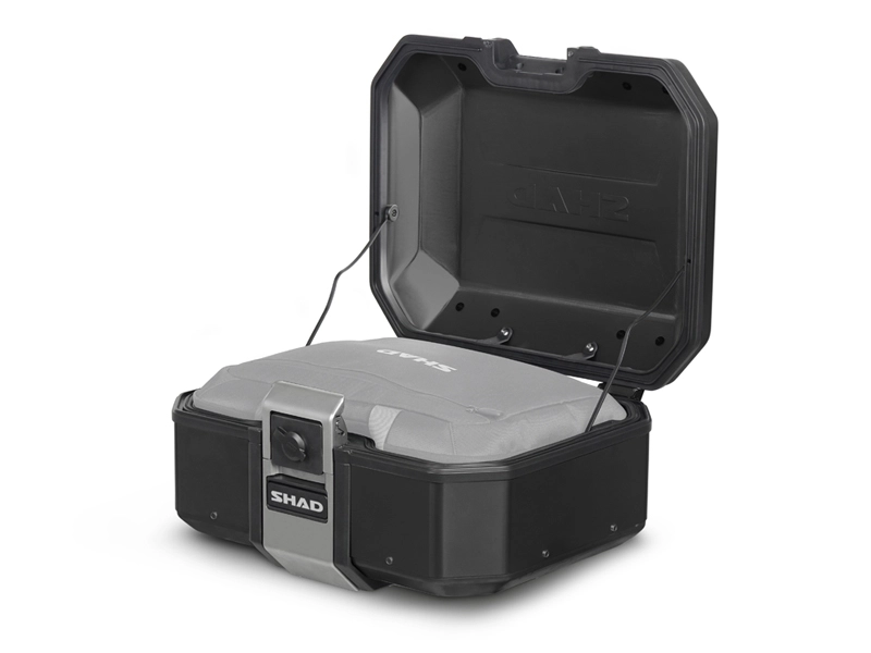 Kufer centralny SHAD TERRA o pojemności 37 litrów został zaprojektowany w oparciu o utwardzony stop aluminium. Pozwoliło to uzyskać niską masę kufra przy zachowaniu maksymalnej wytrzymałości. W połączeniu z aerodynamicznym kształtem czyni go topowym, wyprawowym produktem dla Twojego motocykla. Chowany uchwyt do przenoszenia, zawiasy oraz szlufki na pokrywie do mocowania dodatkowego bagażu są wykonane ze stali nierdzewnej.