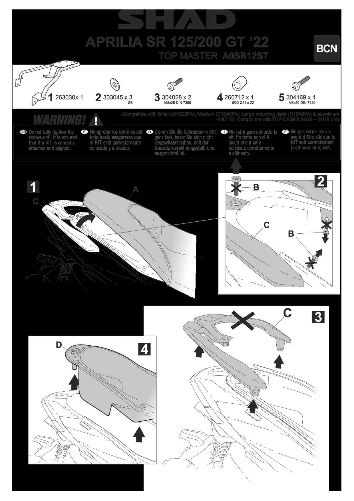 Stelaż kufra centralnego Aprilia SR GT 125-200 (21-26) SHAD A0SR12ST