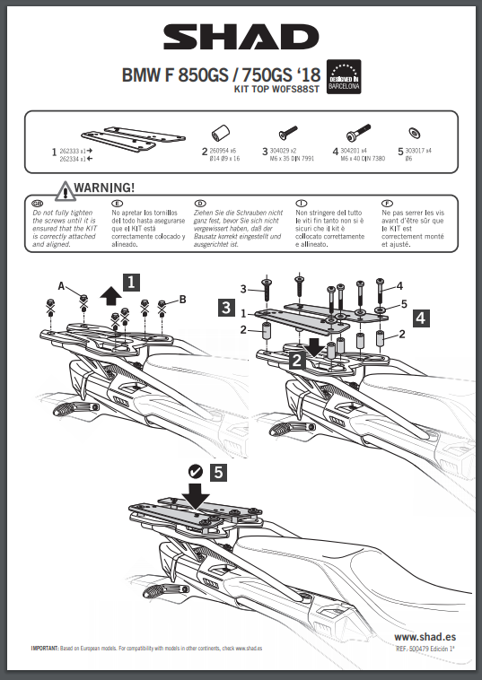 Stelaż pod kufer centralny SHAD W0FS88ST - BMW F750GS (18-24) / F850GS (18-24) / F800GS (24-26)