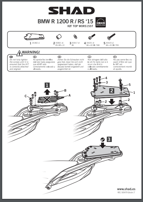 Stelaż kufra centralnego BMW R 1200 R/RS (15-19) / R 1250 R/RS (19-26) SHAD W0RS15ST