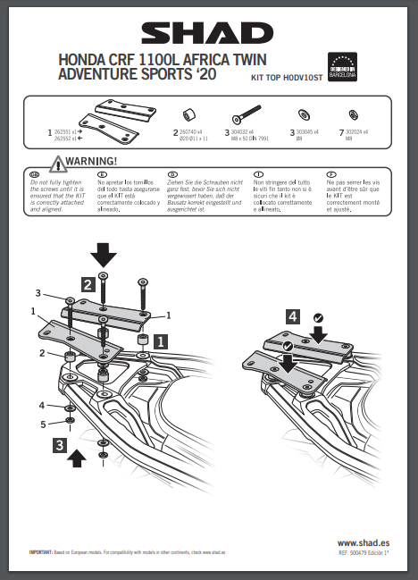 Stelaż pod kufer centralny SHAD H0DV10ST - Honda CRF1100L Africa Twin (20-26) / Adventure Sports (20-26) / Special Edition (21-25)