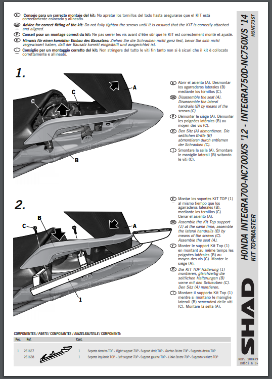 * Stelaż nie jest kompatybilny ze stelażem bocznym SHAD 3P.