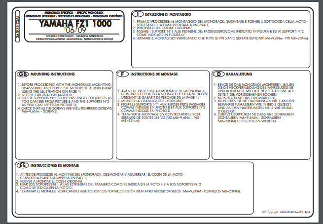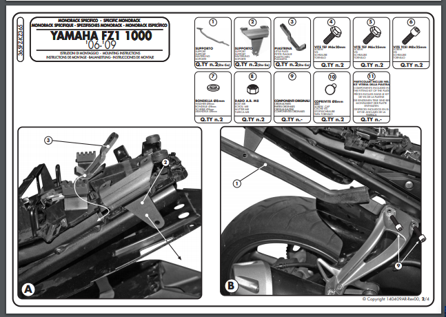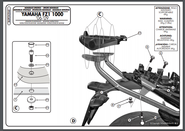 Stelaż kufra centralnego Kappa KZ365 YAMAHA FZ1 1000 (06-15)