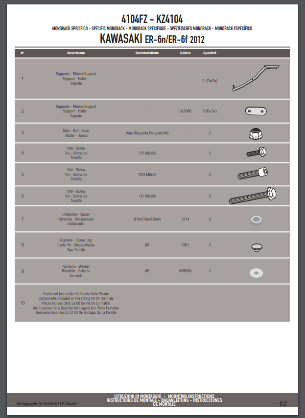 Stelaż kufra centralnego Kappa KZ4104 KAWASAKI ER-6N / ER-6F 650 (12-16)