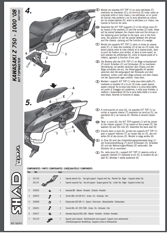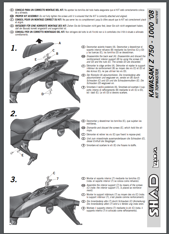 Stelaż pod kufer centralny SHAD K0Z778ST - Kawasaki Z 1000 (07-09) / Z 750 (07-12)
