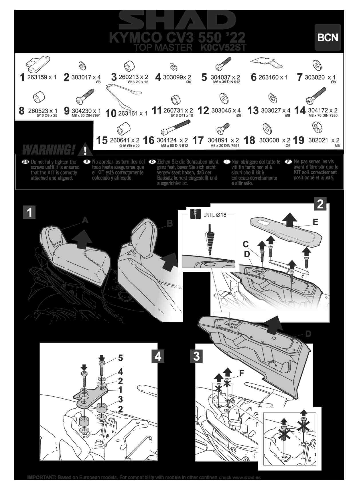 Stelaż kufra centralnego Kymco CV3 550 (22-24) / CV3 575 (25-26) SHAD K0CV52ST