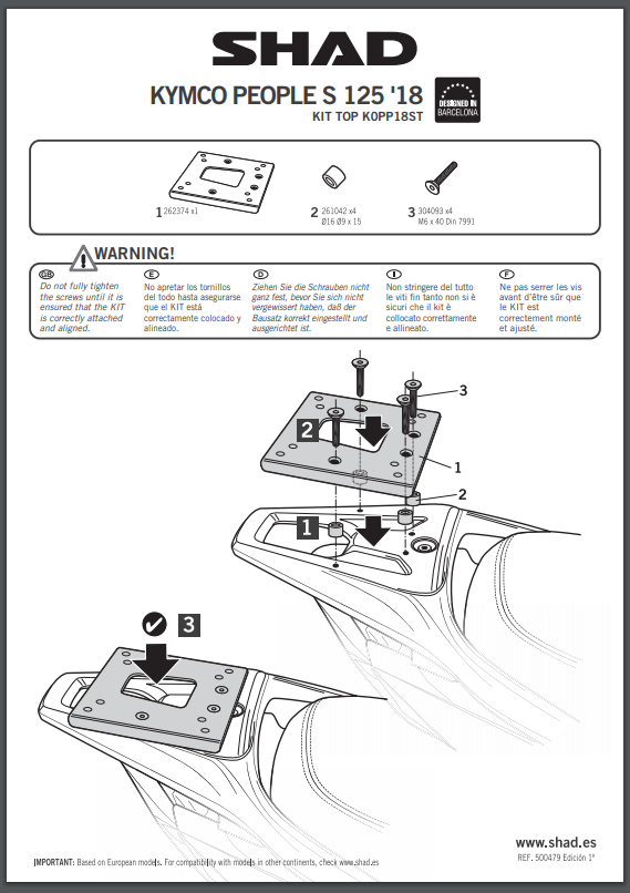 Aby zamontować kufer centralny na motocyklu, wystarczy przymocować do stelaża centralnego specjalnie przygotowaną płytę montażową, która zawsze jest dołączona do kufrów marki SHAD wykonanych z tworzywa sztucznego. Należy jednak dodać, że seria kufrów aluminiowych Terra stanowi wyjątek, w przypadku którego płytę montażową trzeba dokupić osobno. Płyty montażowe również są dostępne w naszej ofercie.