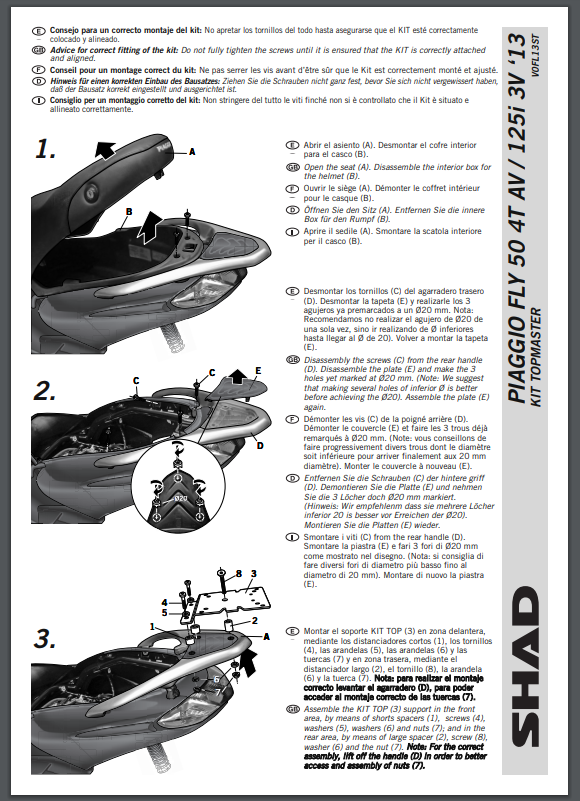 Stelaż pod kufer centralny SHAD V0FL13ST - Piaggio FLY 50-125-150 (13-14)