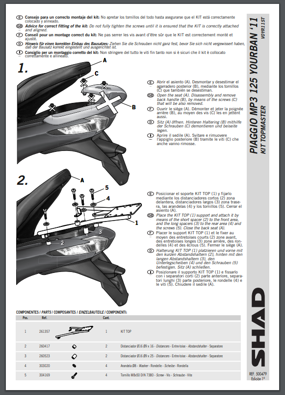 Stelaż kufra centralnego Piaggio MP3 Yourban 125-300 / MP3 300 HPE / 300 HPE SPORT / MP3 300 YOURBAN / SPORT 300 SHAD V0YR11ST