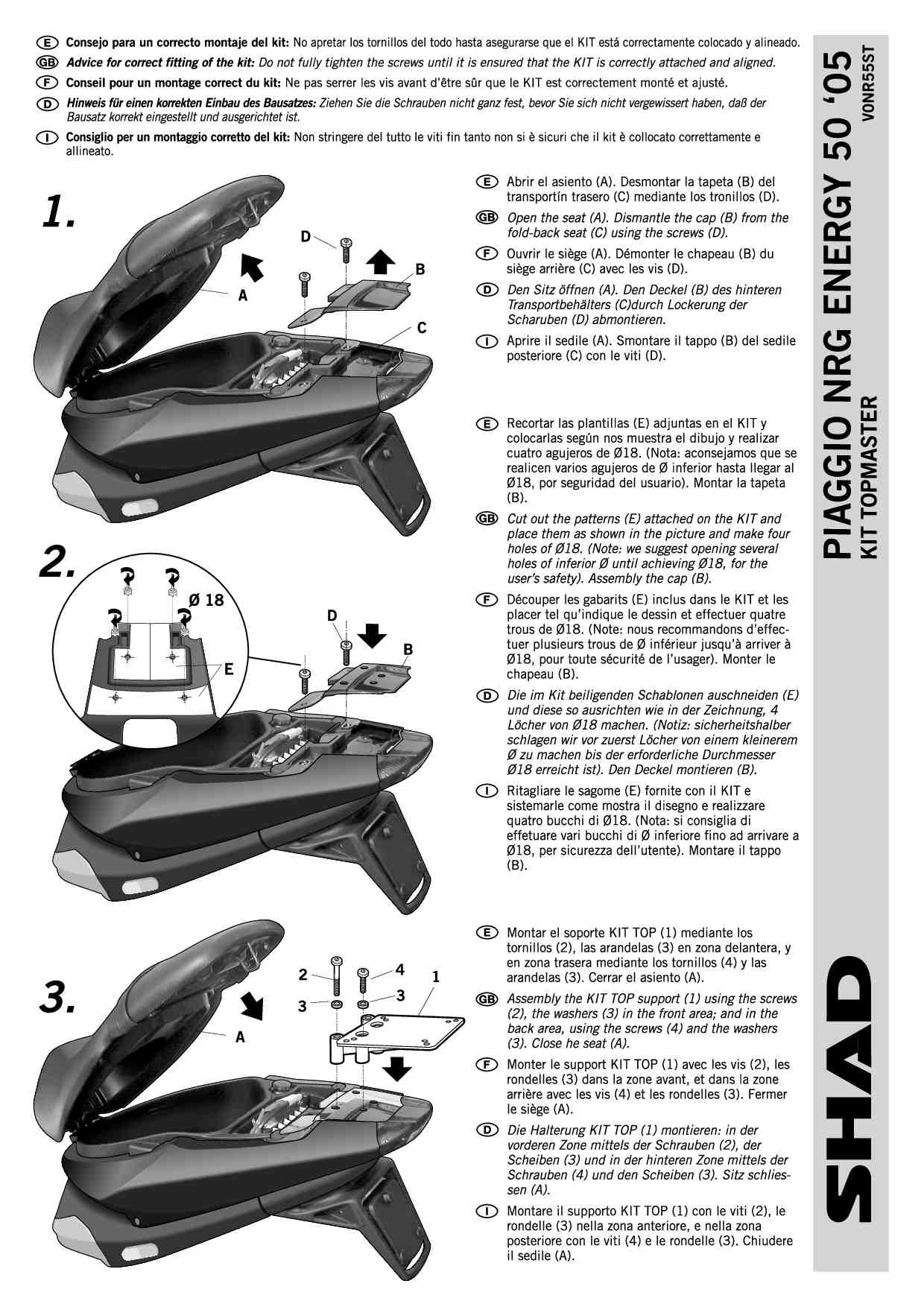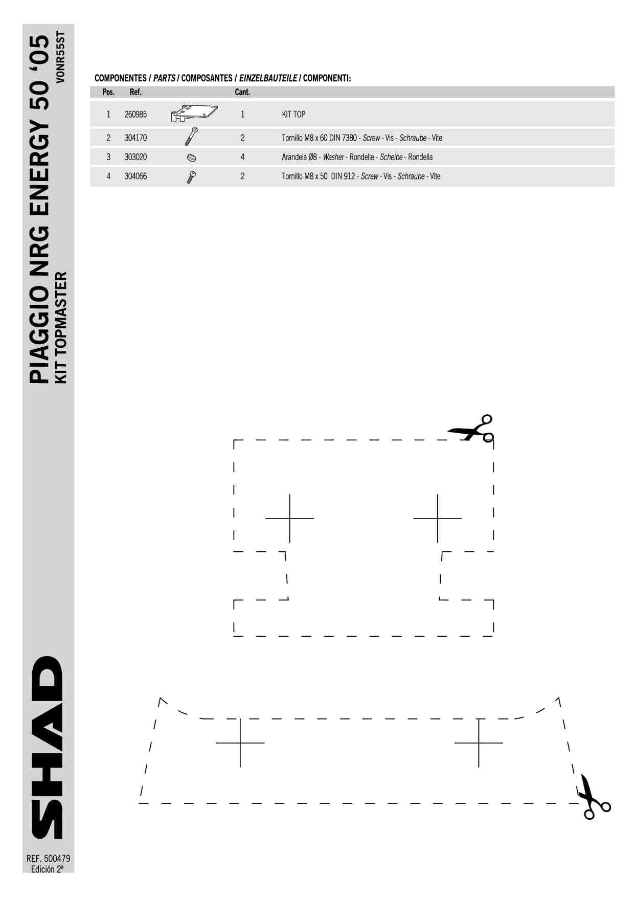 Stelaż kufra centralnego Piaggio NRG Energy 50 (05-24) SHAD V0NR55ST