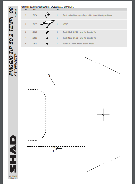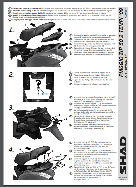 Stelaż pod kufer centralny SHAD V0ZP59ST - Piaggio ZIP 50 (09-14) (24-26) / ZIP 125 (09-14)