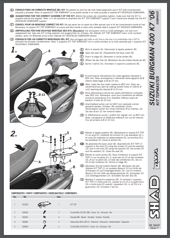 Stelaż pod kufer centralny SHAD S0BR46ST - SUZUKI Burgman 400 (07-16) / Burgman 400 ABS (10-16) / Burgman 400 K7 (06) / Burgman 400Z (07)