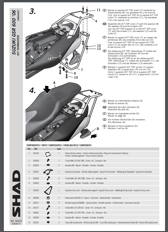 Stelaż pod kufer centralny SHAD S0GS66ST - SUZUKI GSR-600 (05-11)