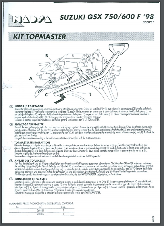 Stelaż pod kufer centralny SHAD S0G78T - SUZUKI GSX 600 F (98-04) / GSX 750 F (98-02)