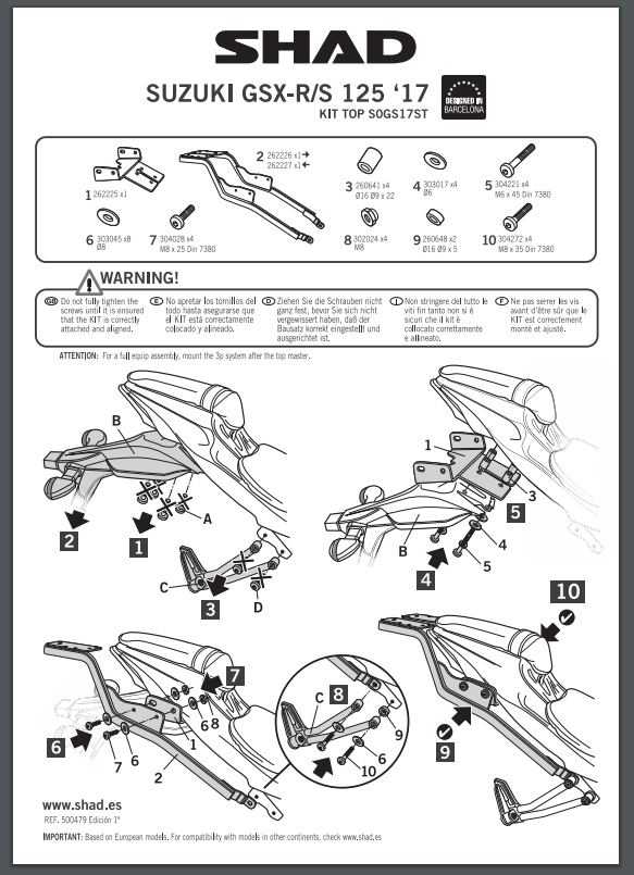Stelaż pod kufer centralny SHAD S0GS17ST - SUZUKI GSX R/S 125/150 (17-24)