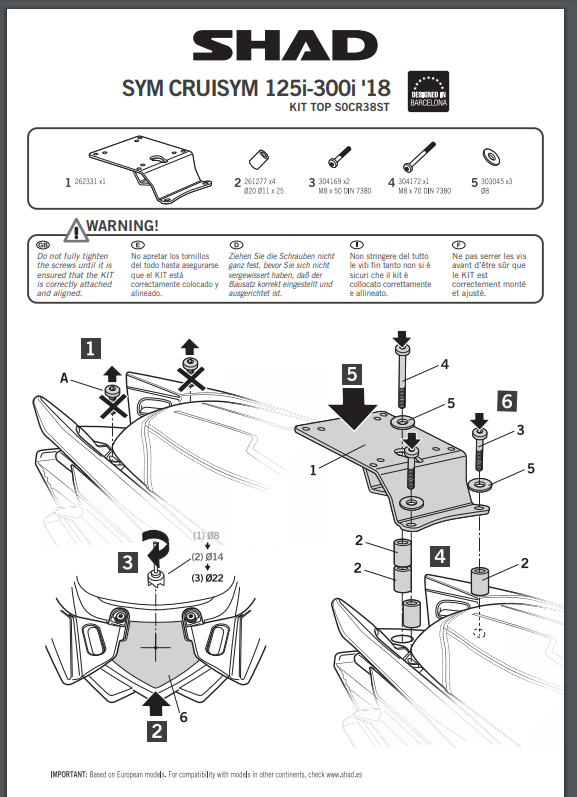 Stelaż pod kufer centralny SHAD S0CR38ST - SYM Cruisym 125i / 300i (18-21) / Cruisym 125i / 300i Alpha (22-26) / Joymax Z+ 125 / 300 (21-26)