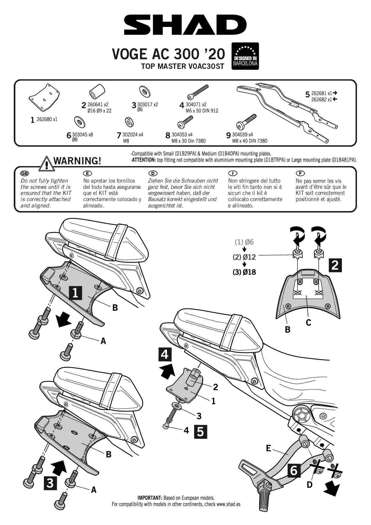 * Do stelaża można zamocować tylko kufry z małą i średnią płytą: SH26/SH29/SH33/SH34/SH37/SH39/SH40/SH45/SH46/SH47.