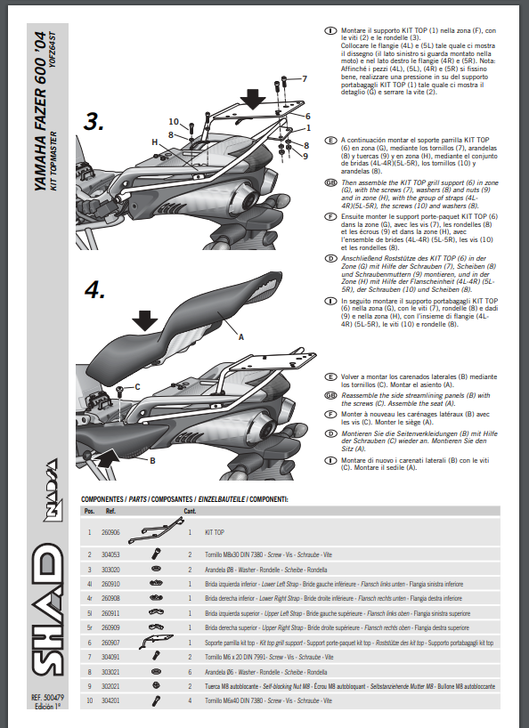 Stelaż pod kufer centralny SHAD Y0FZ64ST - YAMAHA Fazer FZ6 N/S 600 (04-12)
