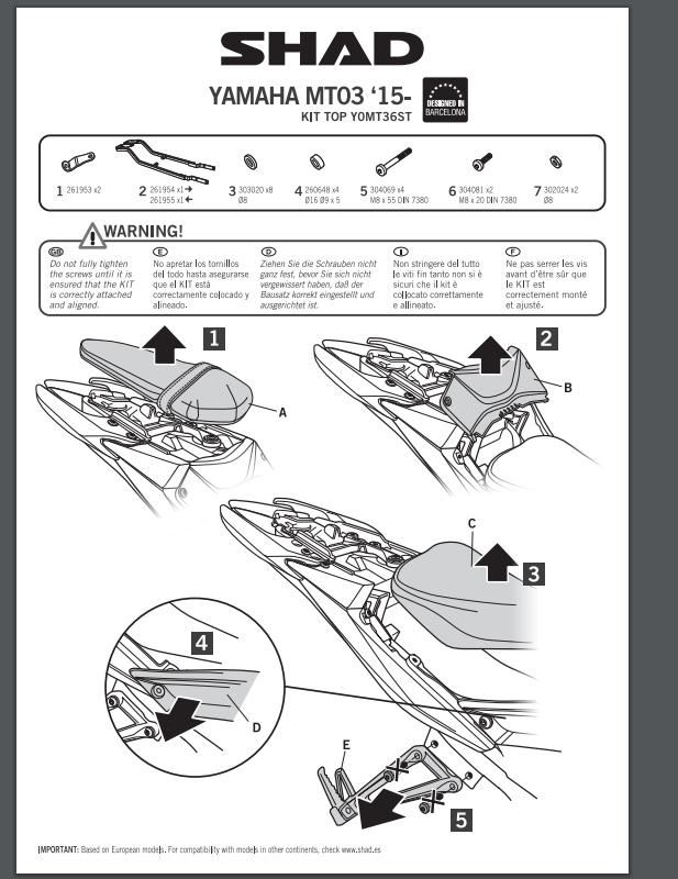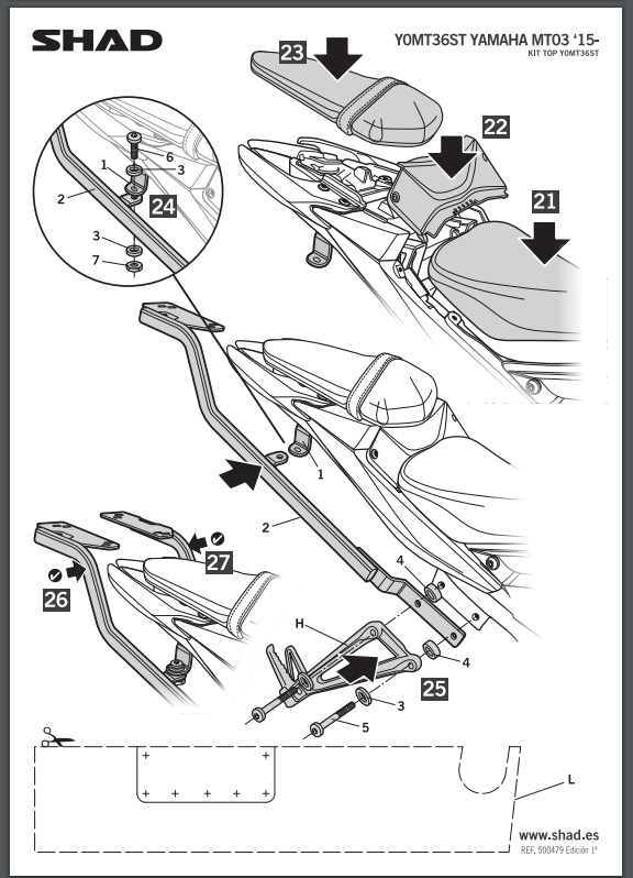 Stelaż pod kufer centralny SHAD Y0MT36ST - YAMAHA MT03 (15-20) / YZF-R3 (16)