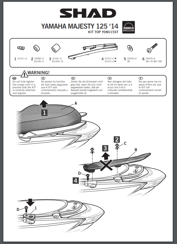 Stelaż pod kufer centralny SHAD Y0MJ15ST - YAMAHA Majesty 125 (14-16)/125S (14-17)/SMax 155 (14-16)
