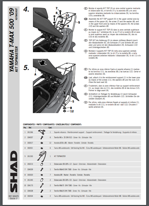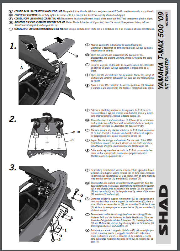 Stelaż kufra centralnego YAMAHA TMax 500 (08-12) SHAD Y0TM59ST